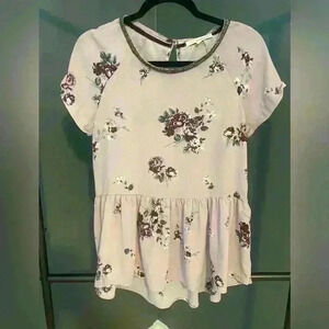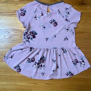 Rewind brand womens purple floral short sleeve blouse top size M