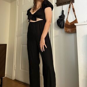Rewind front tie cut out jumpsuit puff sleeves size small