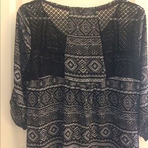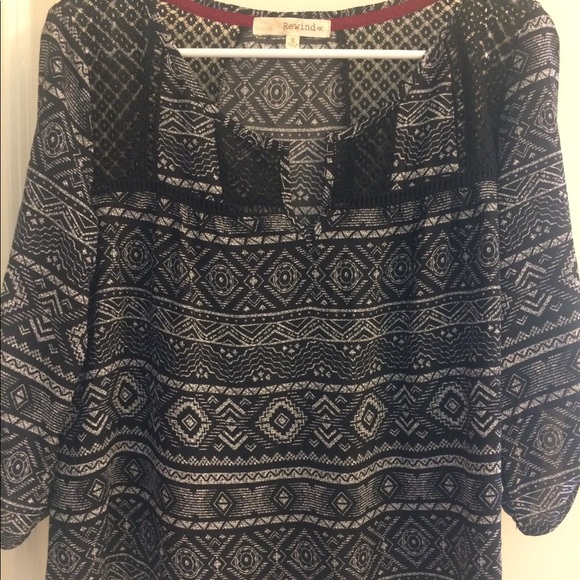 Cute Rewind top with 3/4 button sleeves. Light and sheer for spring or summer.