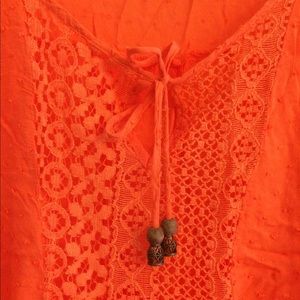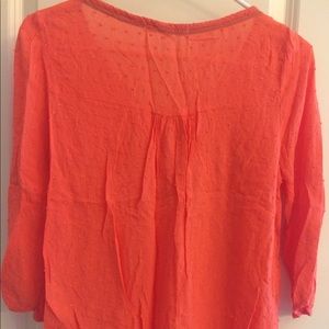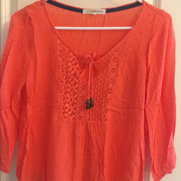 Cute rewind top. Light and sheer. Cute tie around collar with 3/4 cinched sleeves.