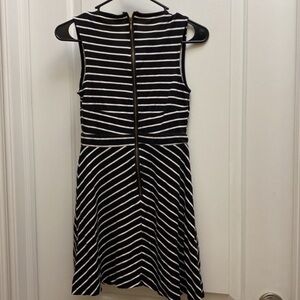 Rewind women's size extra small, black and white striped sleeveless dress with long zipper down the back pet and smoke-free home perfect condition super cute for summer, measurements provided below. Please note these measurements are approximate as dress is stretchy and measurements were taken without adding stretch. Thank you.