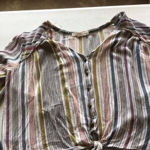 Rewind long sleeved, stripped blouse. Size large. Easy care. Buttoned and tie front.