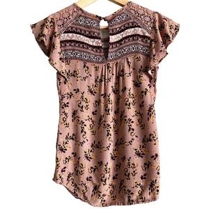 Rewind Floral Top-Size XS Women-Flutter Sleeves-EUC