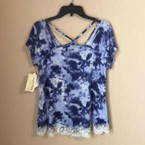 Cute blue tye die top from Remind NWT Lace bottom Criss cross straps in the back Size Med
