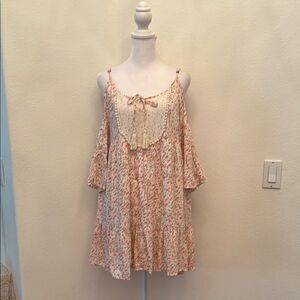 Rewind szS cold shoulder eyelet bodice ruffled short sleeves and hem lined EUC