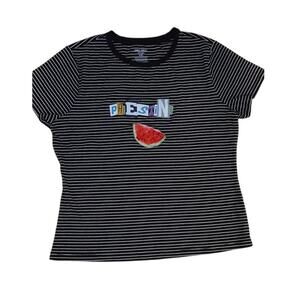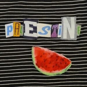 Reworked Black White Stripe Short Sleeve Palestine Shirt- Size XXL