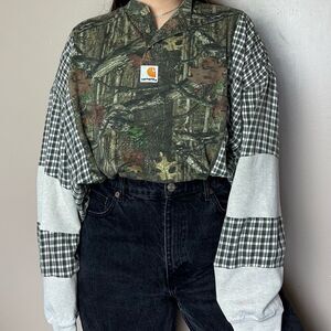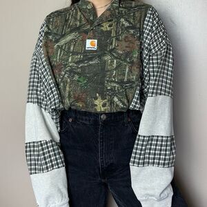 Reworked Carhartt Camo Long Sleeve Flannel Sweater Shirt Relaxed Fit Baggy Shirt