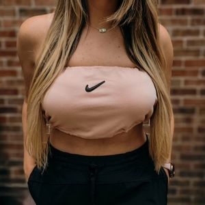 Reworked Peach Nike adjustable bandeau top