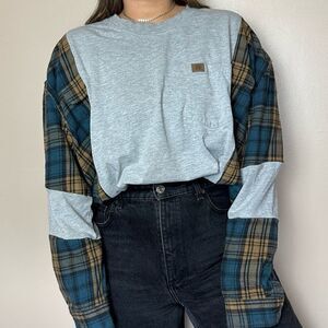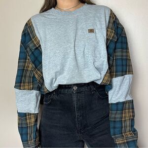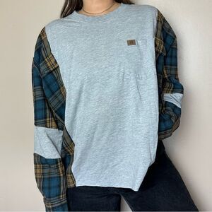 Reworked Upcycled Wrangler Two Tone Long Sleeve Relaxed Baggy Flannel Shirt Top