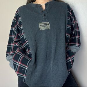 Reworked Vintage Wrangler Long Sleeve Henley Plaid Flannel Western Shirt Top