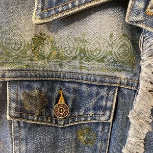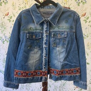 Denim jacket with added artistic detail, done by April Madden. Never worn. Best fits medium.