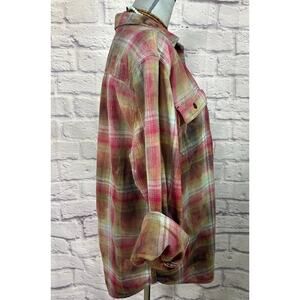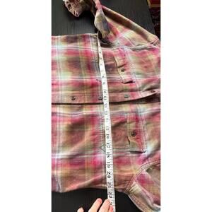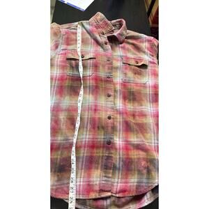 Reworked/upcycled flannel shirt -I rework flannels and other fabrics to give them a new life through a multi-step bleaching and dying process -Each one of these shirts is a work of art and I never know how they’re going to turn out- I just let my creativity take over -I typically start with a men’s shirt for a nice, oversized fit -Fray holes will develop naturally over time. -All my shirts are washed in cold with Tide after the process in order to set the dye and they’re super soft and comfy! -This shirt doesn't have a size tag, but the measurements are consistent with a size Large. Please refer to the measurements in the photos to determine the fit. To get maximum life out of your flannel or other reworked item, I recommend hand washing separately in cold water, then tumbling dry on low. These shirts are wearable art that has been through a rigorous process in order to achieve their unique look and they are delicate. Please do not throw them into the wash with other items. B1729