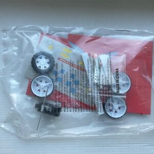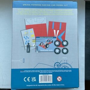 This DIY kit contains everything needed to build a model racing car that makes use of a pull-wire spring motor