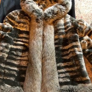 Beautiful, extremely soft, Rex Rabbit and Silver Fox 3/4 length coat with hood. Vintage, worn in store to try on before purchased at Sidestreet Boutique in Lake Tahoe approximately 35 years ago. Then stored in my closet, in the original coat bag. It is time for me to say good-bye to this gorgeous coat! Fits S-L. All reasonable offers considered.
