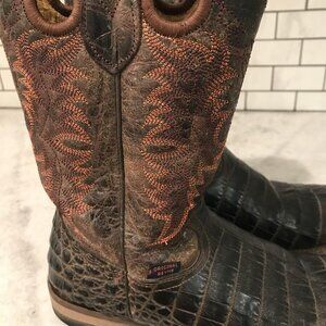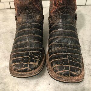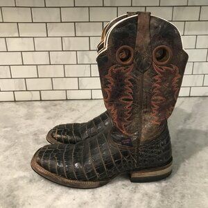 Reyme Cowboy Boots Mens Size 7.5 Brown Black Caiman Belly Western Square Toe