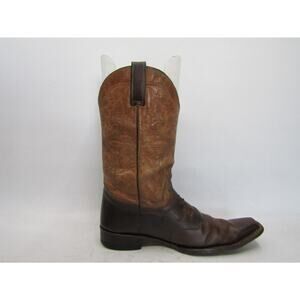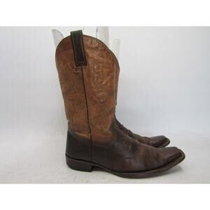 Reyme Mens Size 9 D Two Tone Brown Leather Cowboy Inlay Stockman Snip Toe Boots