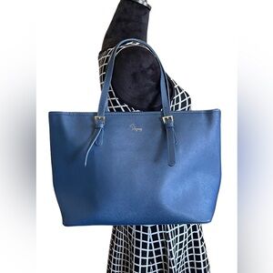 Reymey Calf-skin Saffiano Leather Blue Tote Bag with Pouch