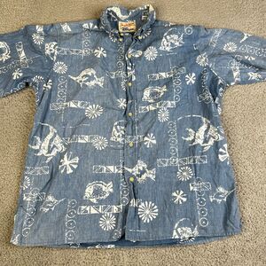 Reyn Spooner Alfred Shaheen Shirt Mens L Blue Hawaiian Button Fish Floral