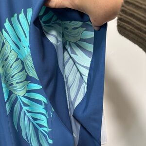 Reyn Spooner Blue/Green Monstera Leaf Kaftan Rayon V Neck Swim Cover Dress NWT