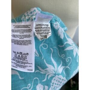 The Reyn Spooner Brooks Brothers Shirt in size XL features a floral pineapple pattern, short sleeves, and a collared button-up design in a blue color. Made from a blend of ramie and cotton, this lightweight woven shirt is suitable for all seasons and has a regular fit. The Hawaiian and Aloha theme adds a fun and tropical touch to this classic men's button-down shirt from a reputable brand like Reyn Spooner.