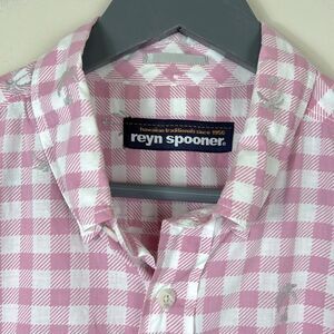 Reyn Spooner Checkered Palm Trees Hawaiian Button Down Shirt Mens Large