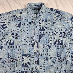 Reyn Spooner Classic Mens Size XL Blue Hawaiian Button Up Shirt Palm Tree Print