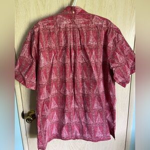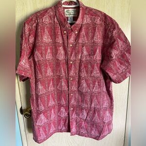 Reyn Spooner Dietrich Varez Collection Hawaiian Shirt Men's deep red with white Sailboats All Over Print.