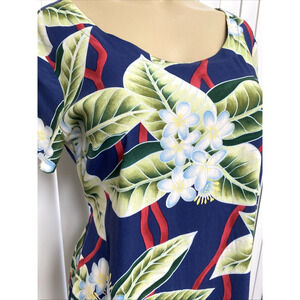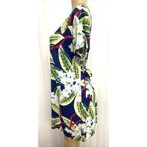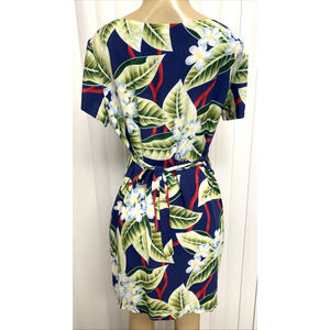Reyn Spooner Dress Rayon Scoop Neck Short Sleeve Mini Floral Plumeria Tie M