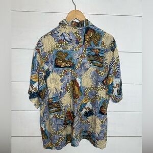 Reyn Spooner Joe Kealoha's Mens Shirt Vintage Reverse Print Rayon Size L