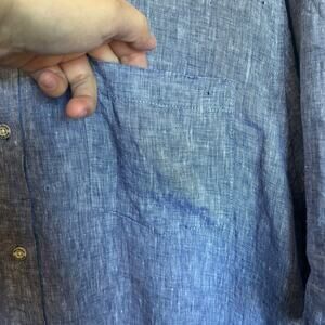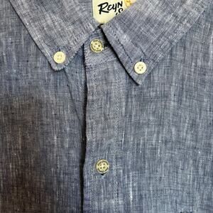 Reyn Spooner Linen Tailored Button Up Shirt Short Sleeve Blue Size 2XL