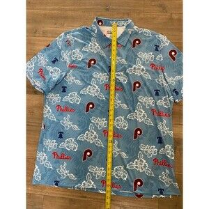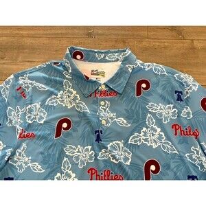 Reyn Spooner MLB Mens 3XL Blue Aloha Philadelphia Phillies Hawaiian Polo Shirt
