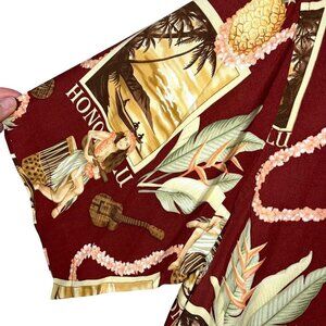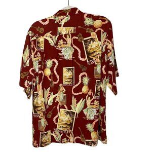 Reyn Spooner Mens Shirt Red Size Small Vintage Honolulu Hula Pineapple Print Rayon Button Front