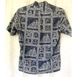 Reyn Spooner Hawaiian Shirt, Blue/White Reverse Print