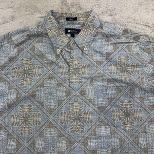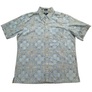 Reyn Spooner Shirt Mens Large Blue Gray Hawaiian Floral Classic Button Up Casual