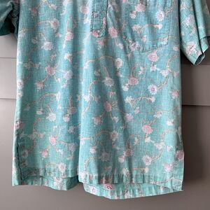 Reyn Spooner Shirt Mens Medium Blue Pink Floral Hawaiian Button Up Short Sleeve