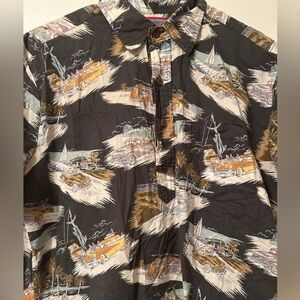 Reyn Spooner Shirt Mens Medium Gray Car Cars Button Up Hawaiian Camp Popover
