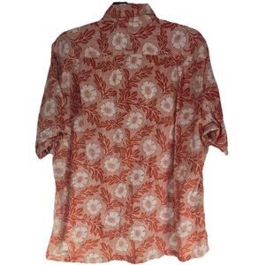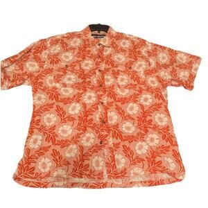 Reyn Spooner Shirt Mens XL Floral Orange Linen Button Up Hawaiian Short Sleeve