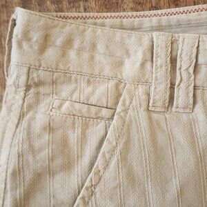 Classic beige khaki shorts with subtle vertical stripe texture