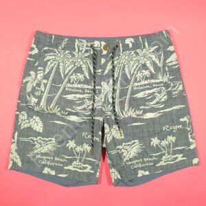 Reyn Spooner Shorts Mens M Blue Reversible Hawaiian Stretch Drawstring