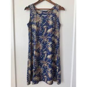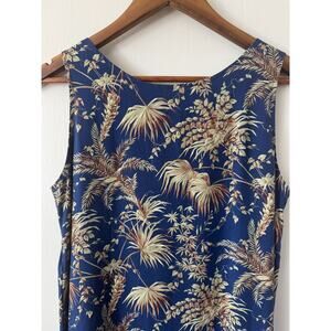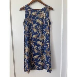 Reyn Spooner Vintage Dark Blue Sleeveless Hawaiian Palm Print Dress