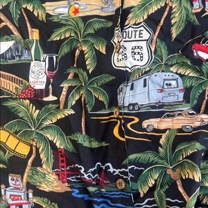 Such a fun vintage button down top from reyn spooner. In a women’s size S. Features the Route 66 sign, palm trees, the Golden Gate Bridge, airstreams, convertibles, and more. Such a fun top for a costume or everyday wear! In excellent vintage condition with no visible flaws.