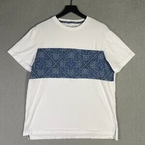 Reyn Spooner Women's Bandana Print Panel T-Shirt White Blue Cotton Size Large