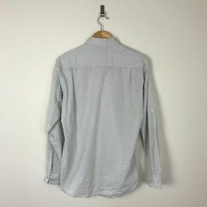 Reyn Spooner long sleeve button up shirt in very light blue/gray. Beautiful floral embossed fabric. Women's size medium.