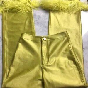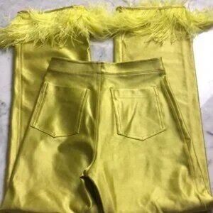 Rezek DIJON FOXY HUSTLE PANT out in style with these elegant satin pants featuring a chic feather trim. Perfect for any occasion, these pants add a touch of luxury to your wardrobe.