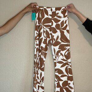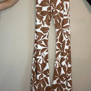 Super Cute pants from Rhapsodielle brown and white with flower pattern super soft and flattering has wide leg bottom