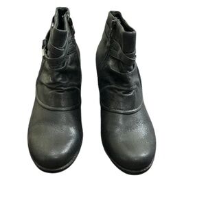 Sleek black design by Rhapsody. Versatile and chic. ( photos appear more gray but the boots are black)Experience the perfect blend of style and comfort with Rhapsody's Bare Trap black ankle boots. Size 8 1/2 M See photo for material information. These boots feature a great design and a zip and slip-on style for easy wear. Ideal for any occasion, they offer a classic silhouette with a rounded toe.Pre owned in good condition.