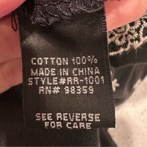 100% cotton. Great pre owned condition. Stretchy, elastic waist. Super cute trim with white floral pattern throughout. approx 12" waist, 16.5" long.