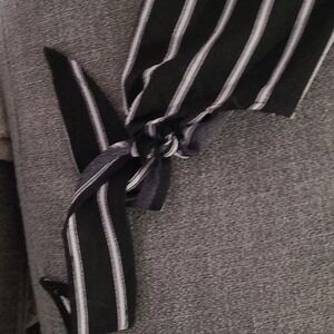 Flowy, flattering, wrap tie around wrist on sleeve.A little shorter in the front than the back. Size large