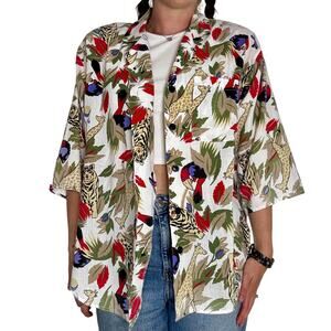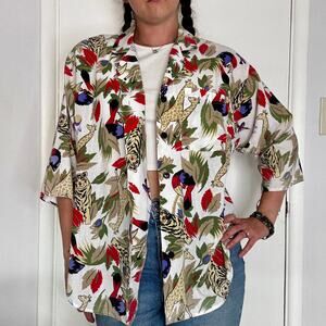 Rhapsody Safari Jungle Print Button Up Cotton Blouse Vintage 1990s Size Large