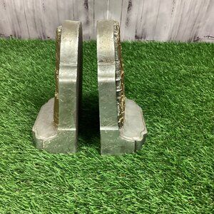 I'm not too sure what they are made out of but I know they are painted silver and gold. The paint job isn't the best and there's some overspray on the sides. But they are still great pair of bookends of the famous French cathedral.